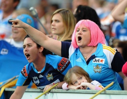 Look, I won’t lie to you, we here at the Sportress love a good swear, in fact we’re renowned for swearing nonstop during some sporting events. But you have to know when and where to swear. Around your friends and like-minded adult fans, who are most likely swearing too, well you’re free to drop as many F-bombs as you like. However, if you’re sitting in an area with families present you can either (a) modulate your swearing to suit or (b) move to where children and the easily offended aren’t sitting.