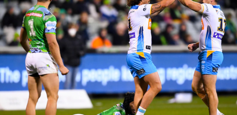 They compounded this porous defence with errors and penalties. So many tries were facilitated by Canberra. Simonsson was out of position on a grubber and had to take it out of bounds. Moments later that set became the first try. Jack Wighton wasted good ball with an awkward pass to Elliott Whitehead that became an error, gave the Titans the ball, leading to his twin defensive errors and the Titans’ second try. Simonsson, Seb Kris, Semi Valemei and Jarrod Croker all failed to diffuse kicks resulting either directly in tries or sets that would become tries. When they did get defensive control of sets, they gave away late set penalties so regularly Metamucil is considering sponsorship.