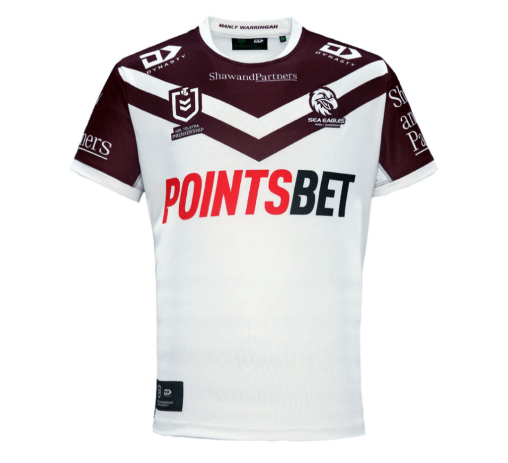 The design team at Manly have raided the club classics – the hoops motif has been the most dominant throughout their history, while the V/chevron adorned their first ever jersey. Hopefully they ran all these past the playing group to make sure they weren’t “sinful” in any manner (Gambling corporations as primary sponsors not withstanding).